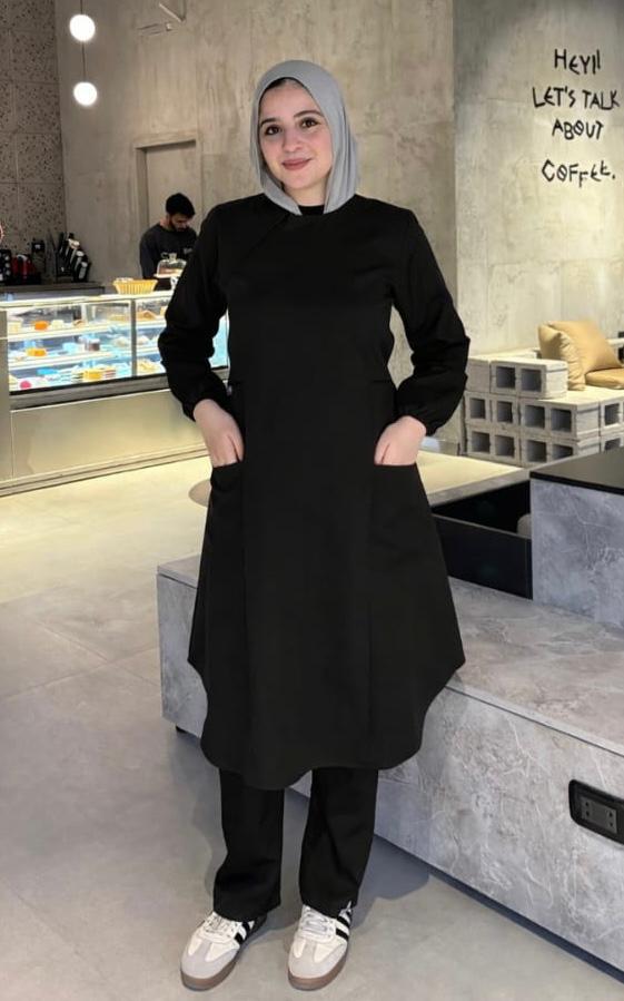 hijab max scrub color : black material ; rozalin Türkiye model description: 4 pockets on plouse 2p0ckets on pants zipper