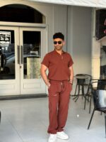 hijab max scrub color : black material ; rozalin Türkiye model description: 4 pockets on plouse 2p0ckets on pants zipper
