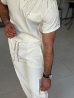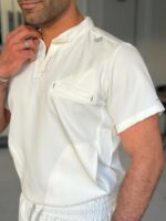 Designed with short sleeves and a modern Chinese collar, this scrub delivers a clean, professional look.
